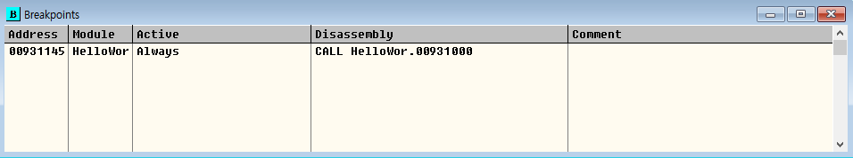 메인 메뉴의 View-BreakPoint를 선택(단축키 ALT+B)하면, BreakPoint 목록이 나타난다.