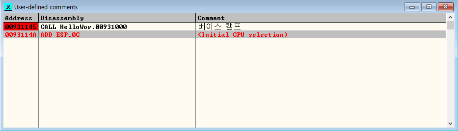| comment | 디버거에서 추가한 주석(옵션에 따라 약간씩 다르게 보임) |