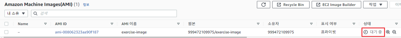 이미지 생성에는 몇 분이 걸리기 때문에 바로 목록에 나타나지 않을 수 있으며 상태가 '사용 가능'으로 나온다면 생성이 완료된 것이다.