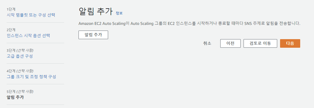 Auto Scaling 그룹 내 인스턴스 변화가 있을 경우 알림을 받을 수 있다. 해당 기능은 별도로 설정하지 않고 다음 클릭