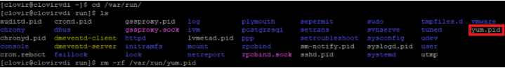# rm -rf /var/run/yum.pid