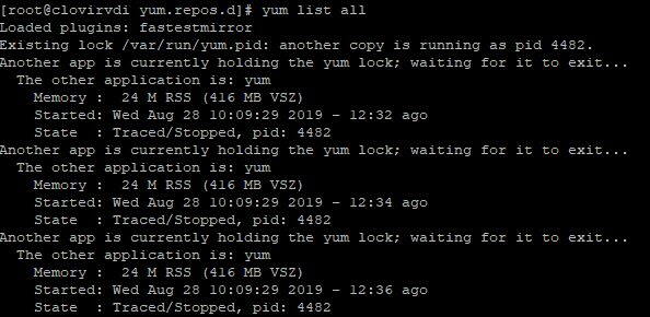 해결법은 간단하다. 현재 사용중인 프로세스를 제거하거나 실행중인 yum을 제거하면 된다.