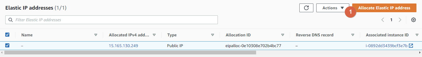① EC2 관리 콘솔에서 Elastic IPs ➜ Allocate Elastic IP address 클릭