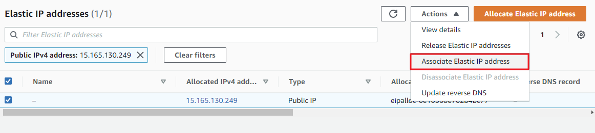 ① 해당 EIP를 선택한 상태에서 Associate Address 클릭