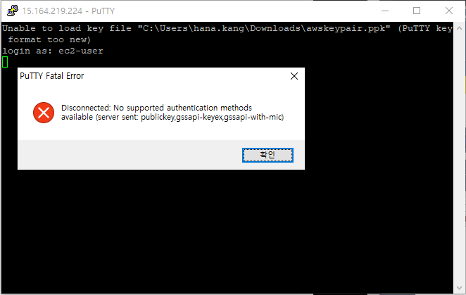 생성한 EC2 인스턴스에 SSH 접속을 시도했는데 다음과 같은 에러가 발생했다.
